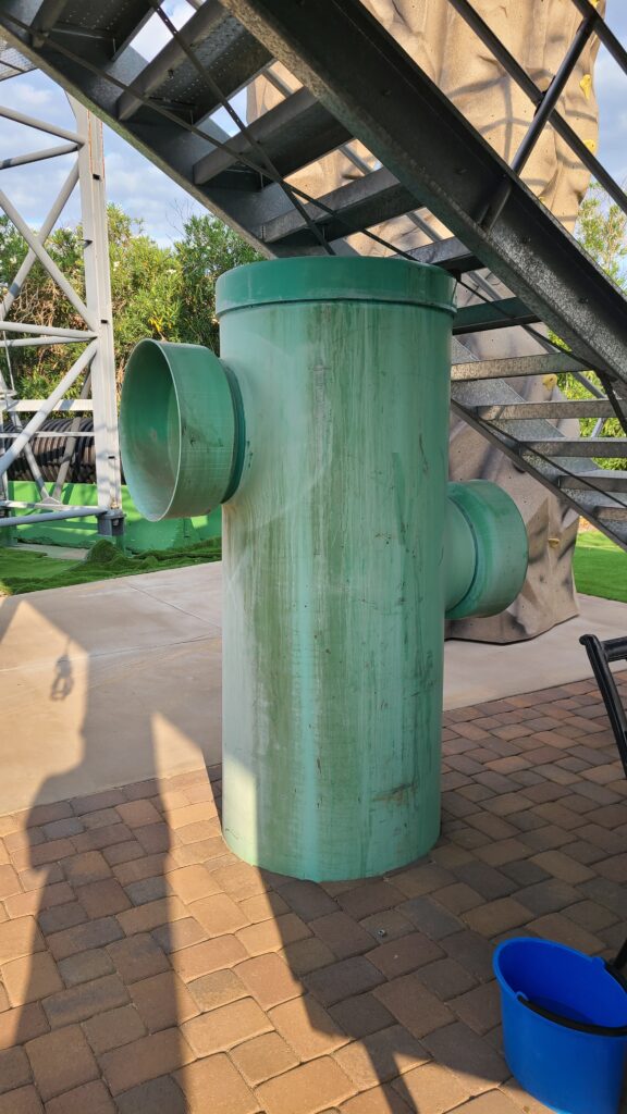 160' by 9', 99% spray paint, some detail brush work. Done in two stages, center 80 ft first, then added 40ft on each side.
